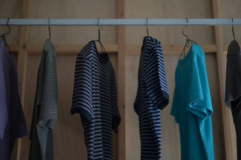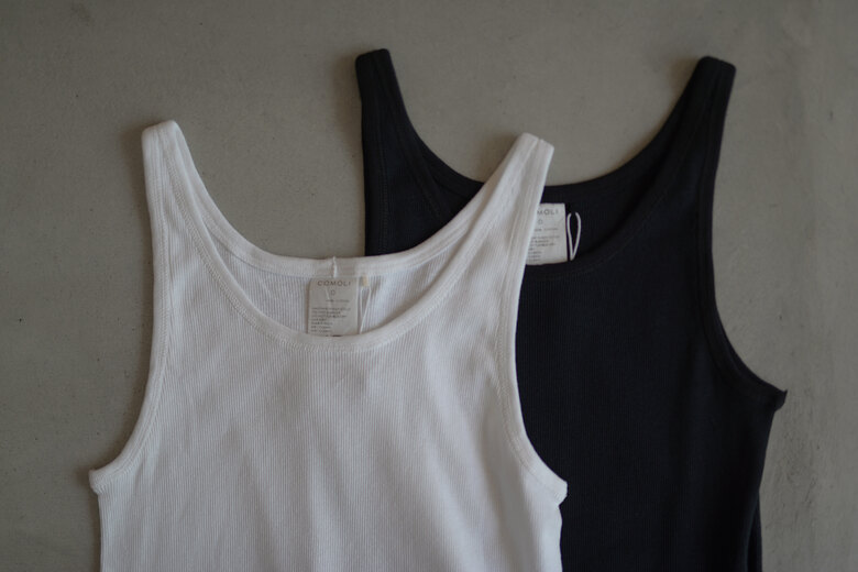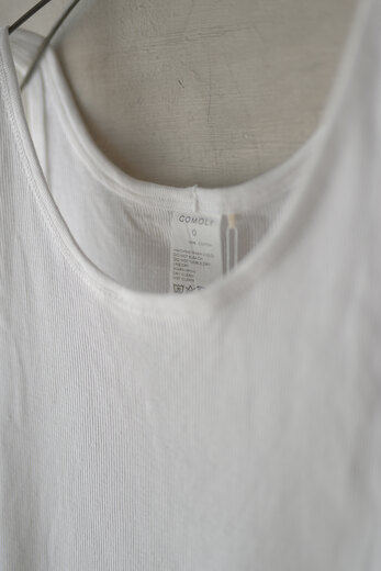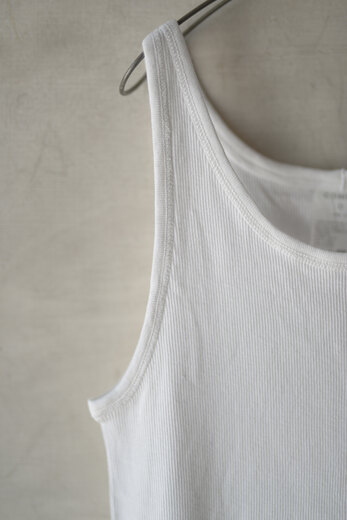 その日の気分でTシャツだったりシャツだったりブラウスだったり変わる。当たり前のように、首の開き具合が違う。同じように背中の部分の開き具合も違う。脇の開きだって違う。インナーが見えて欲しくない時もあるし、見えて欲しい時もある。チラリと見えてもよれっとなっていて欲しくない。シンプルだからこそ、生地に気を遣いたいし、肌に近いから心地よいものが良い。歳を重ねるほどにそういう事がワガママになるし、そういう事にワガママでいたい。太すぎず細すぎないリブなので、インナーにも1枚で着ても、分厚すぎないので、パンツにインしてもモゴモゴしない。スッキリしているけどしっかりした1枚です。