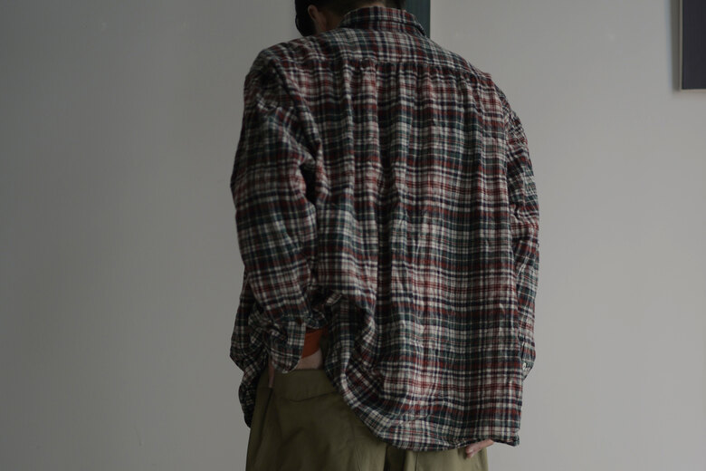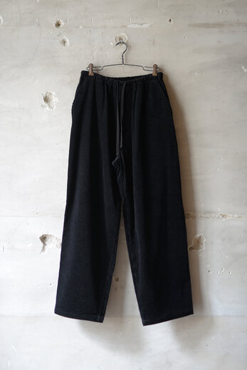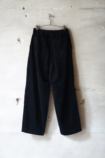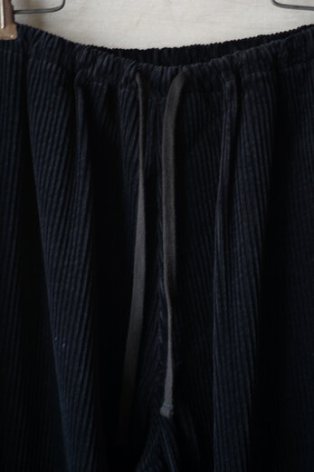 『今まで無かったのが不思議ですね。』とお客様。ドローストリングにコーデュロイ。何ら違和感もなく、ここに馴染んでいます。ウエストがゴムとドローコードの快適だけど、だらしなく見えないドローストリングパンツ。ややワイドだがコーデュロイの重みでストンと落ち、程よくスッキリしているようにも見える。冬にしか使う事が出来ない特別な素材と最高の日常着が合わさった、冬の特別な一本になりそうな予感がします。