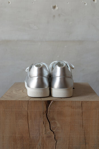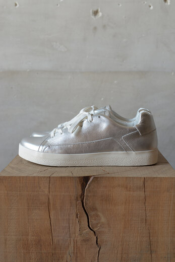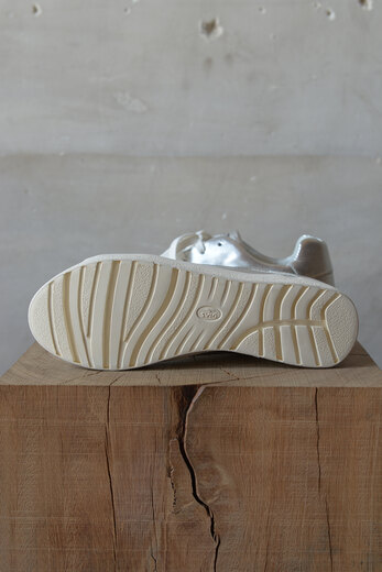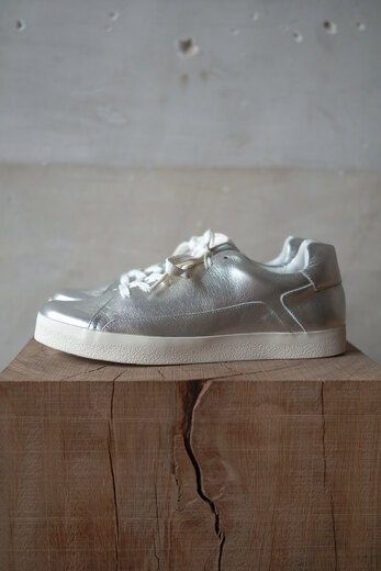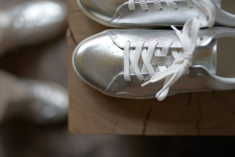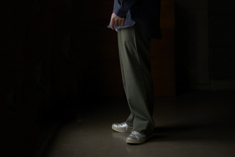 20年くらい前にゴールドやシルバーのスニーカーが流行っていて、当時は白ばかり穿いていた自分にとっては衝撃だったのを覚えている。必死に歩いて探し見つけたシルバーのスニーカー。まさかAFOURでご提案できる日が来るとは思ってもみませんでした。どちらかと言えばクラシックなデザインのオロンゴにメタリックカラー。古いような新しいような近未来感を感じるような。一見取っ付きにくい様に見えるかもしれませんが、実際に履いてみると決して派手過ぎず、いつものパンツにしっくりくるのです。しかも履き込めば革靴の様な経年変化も楽しめる。(着用しているシューズは2年ほど履いています。)