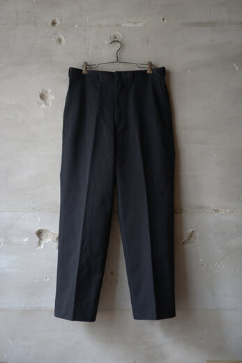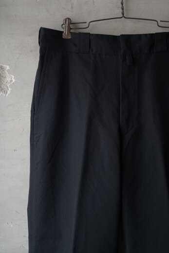 昔ながらのワークパンツにリーバイスのスタプレの様な雰囲気の素材。コットンが入っているので柔らかく上品な光沢がありとても滑らか。それはまるでトラウザーズの様にも感じる。サラッとした肌触りで気持ちの良い穿き心地。ジャストサイズだとスッキリ、ワンサイズあげれば労働着っぽく。使い方によっては綺麗にも土臭い雰囲気にもなれる、馴染み易いパンツです。ちょうど入荷した日に『スラックスが破れてしまって・・』とこのパンツをスーツのスラックス代わりに穿いて帰られた方がおられましたが、全く違和感がありませんでした。