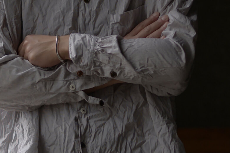 『襟なしが苦手なんです。』そんな人でも着るとあれっ?と不思議そうな顔をする。