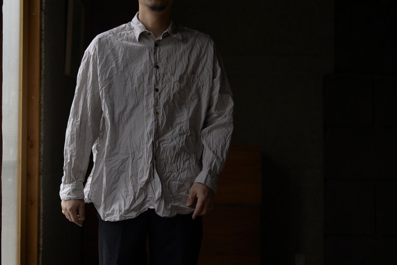 上品な生地を洗い晒しで軽やかに。春の風がシャツの中を通り抜ける。