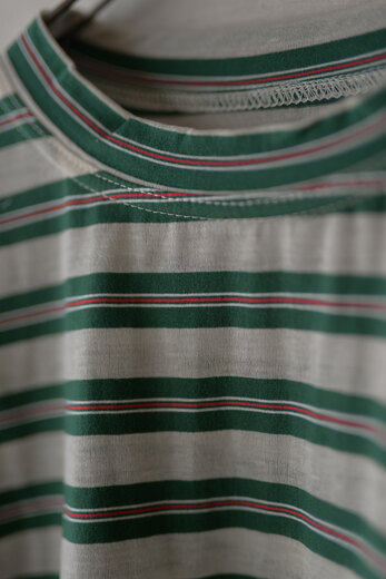 暖かい春、暑い夏。軽やな洋服は重ね着もし易く、鬱陶しい暑さも幾分和らぐ様な気がする。CLASSのこのTシャツは空気だ、と思ってしまいそうになる程軽くて薄手。(気になるほど透ける感じはしませんが、このTシャツをイメージしてメッシュのタンクトップを仕入れています。)春はジャケットやコートの下に、夏は一枚で涼しく。昔よく着ていた古着のサーフTシャツの様な懐かしい雰囲気、そんなムードを楽しめるTシャツ。