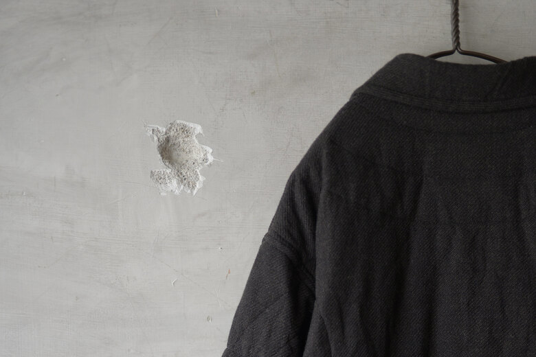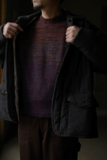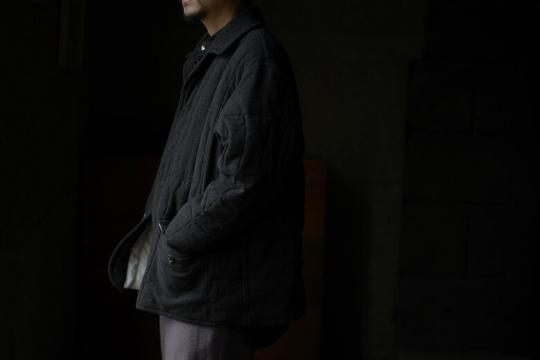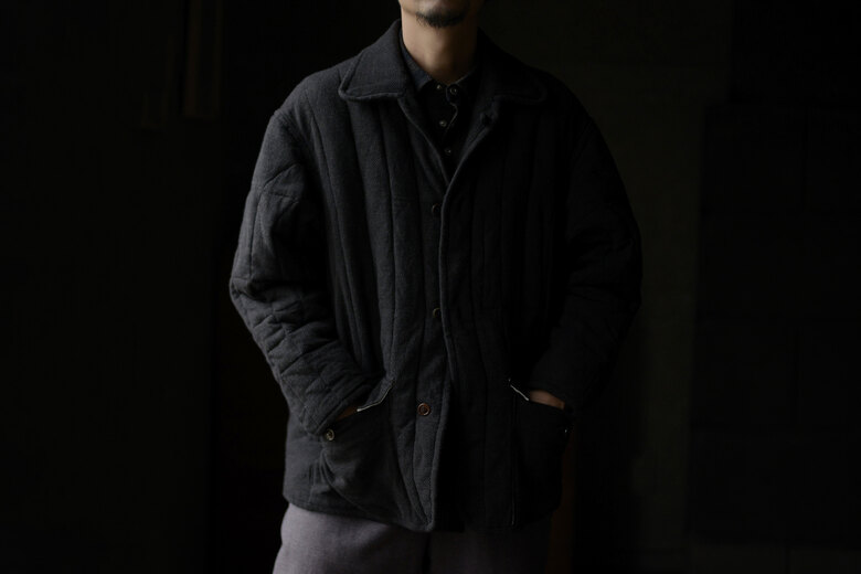 振り切った土臭さ。この洋服を初めて見た時に脳天にくるものを感じた。元々バブアーの古いものが好きで、冬になると毎年着ている。あのオイルの抜けた感じ。擦り切れてボロボロになった感じ。重たくて個性でしかない洋服が着古されると何とも言えない雰囲気になる。それを着る事でいつまでも高揚できる。そんな洋服は中々ない。