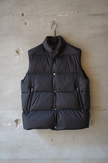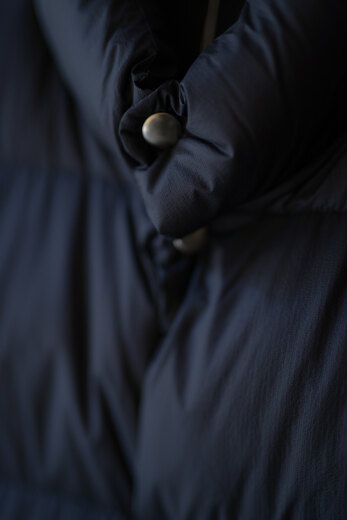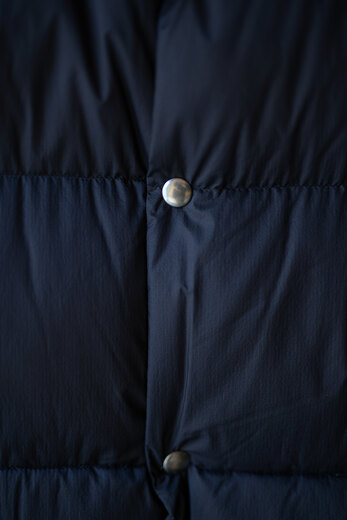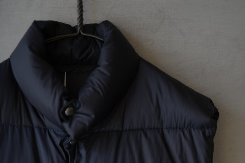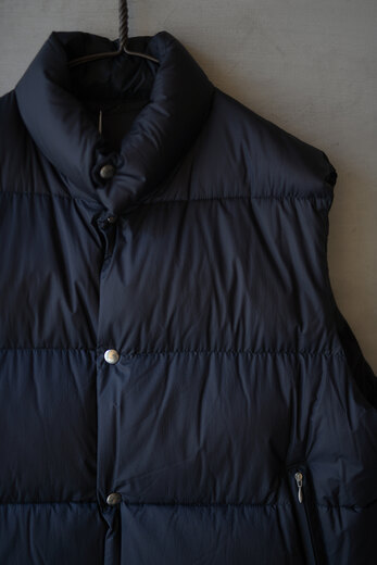 見た目はボリュームがあり少し重そうに見えるけど『軽い!』、『着ている感覚が無いに等しい。』と試着された方々は言われます。サイズもあるようで無いような、様々な体型の方が様になってしまうダウンベスト。撥水性のある薄くて軽いナイロンと小さく畳んで収納しても復元する800フィルパワーのダウン。ジャケットやコートの上から、セーターやスウェットの上から、プラスするだけで自然な暖かさを感じられる。そのプラスが重くないから余計に快適なのです。