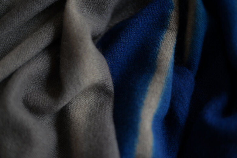 寒い冬は常に鞄の中に入っているストールやマフラー。外に出る時にサッと巻いて、部屋でじっとしている時には肩から掛けて。それだけですぐにじんわりと暖かさがやってくる。それを最上級に味わう事ができるのがスズサンのカシミアニットのショール。首に巻き易く、肩にも掛けやすい大きさで巻いた瞬間からカシミアの優しいホワホワとした柔らかさに包まれる。上品なSILVER GRAYと差し色になるROYAL BLUE。冬の景色に自然と馴染んでくれそうだ。