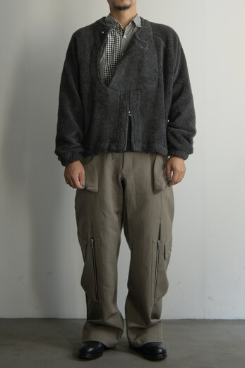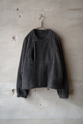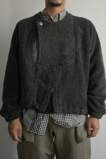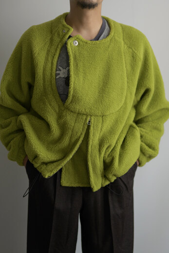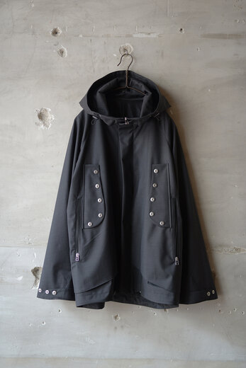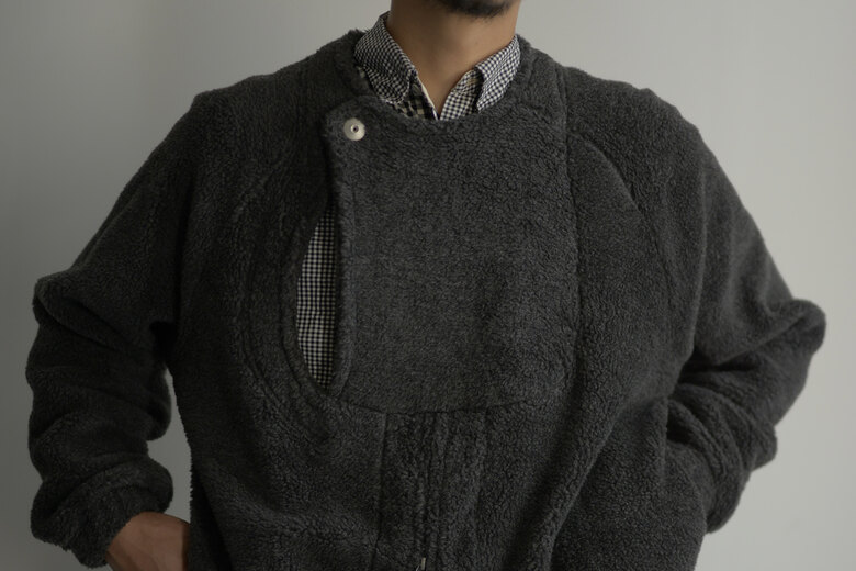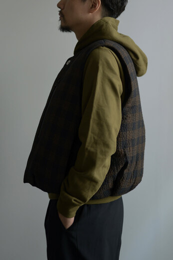 『ウールなのに止水ZIPって。でもここがシルバーだったら良さが半減しそうですよね。』とお客様。元の用途とは別の用途を見立てるデザインだからこそ成立している気がする。それは造形的にも機能面でも。前横後、どの角度から見ても可愛らしい丸みと少し短めの丈。フーディやニットやシャツやカットソー、どれを合わせてもさまざまなバランスで楽しめる。そして軽くて暖かくて・・・。寒くなるのが待ち遠しい気分になった。
