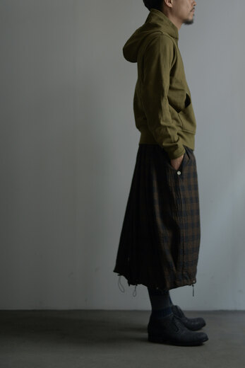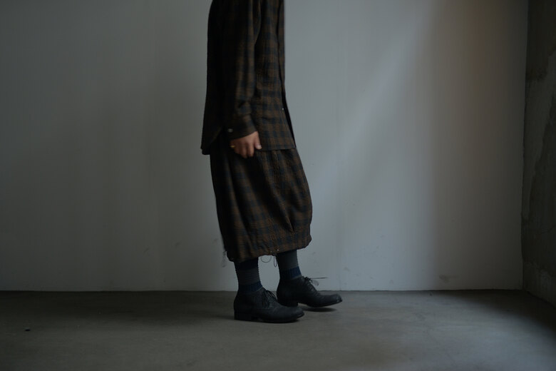店主やお客様が穿いているのを見て、子供の頃、姉が好きだったチェッカーズ(知らない人は調べてください)をよく分からないままに一緒に見ていたらチェックのスカートを穿いていて、わぁ〜可愛い。と思ったのを思い出した。現代の私はスカート、ワンピースやパンツという選択肢が多い。しかしながらINSIDE MY GLASS DOORSの男性はほとんどの方がパンツ一択になっている。男性だって選びたいよね。造形的には素晴らしいから、お店に並べていると惹かれる人が多い。初めは冒険心から試着してみる。あれ?意外といけるんじゃない?てなる。すぐにカッコ良いんじゃない?に変わる。で、案外あっさり特別な事ではなくなっている。普通にカッコ良いし新しい事をするってドキドキもするけどワクワクもしませんか?秋だしね。