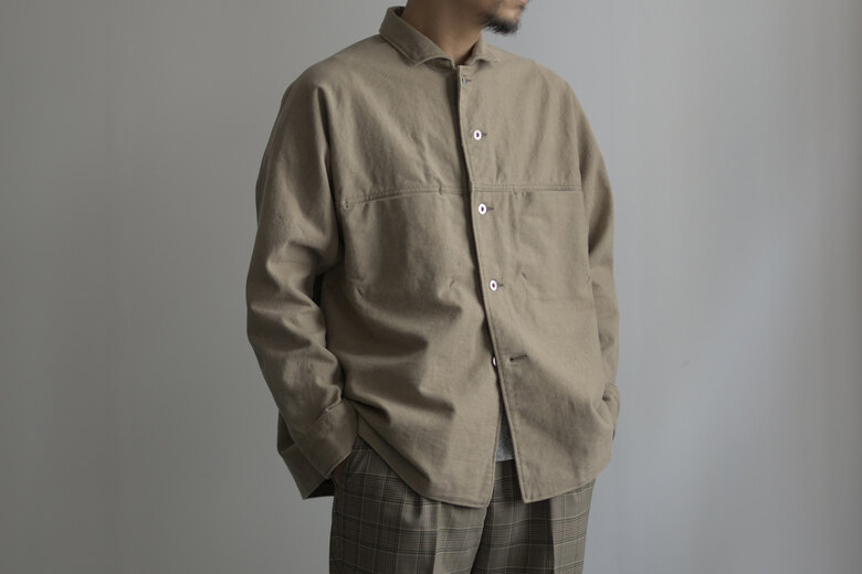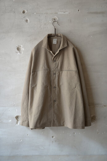 使い古したヴィンテージのデニムをイメージし、パウダーデニムという特殊な加工を施したシャツのようにクタクタなジャケット。デニムに起毛をかけて、さらにBALL WASHを施し、製品後にさらにもう一度。とことん傷みつけてこのジャケットが完成しました。それでもびくともしない強靭なデニム生地。近頃シャツなどに使われる生地をジャケットに見立てる、シャツみたいなジャケットが重宝している。このTOFU DENIM JACKETは生地が柔らかくデザインも相まってシャツみたいに着れる。よく見ないとわからないが身頃と袖が続くヨークは生地が横向きに使われていてユニークだ。そして可動域が広く動き易い。生地が柔らかいのでごわつく事もない。これも言わばシャツみたいなジャケット。これからはTシャツの上に着て脱ぎ着できるし、いよいよコートが必要なくらいの寒さになったらこの上からコートを着ればライナーの役割を果たし、前者の様に重宝するジャケットになるのではないでしょうか。