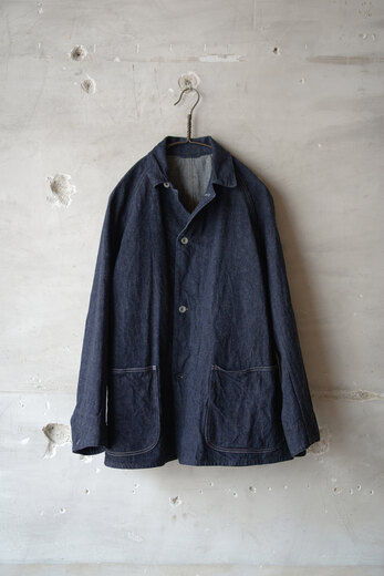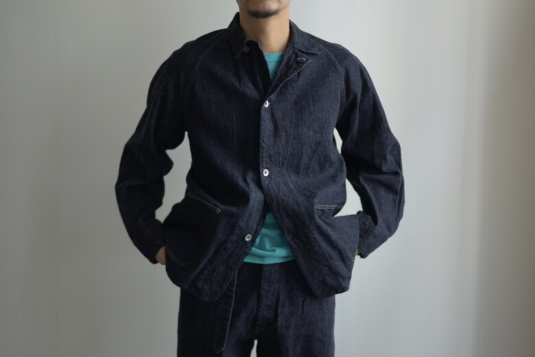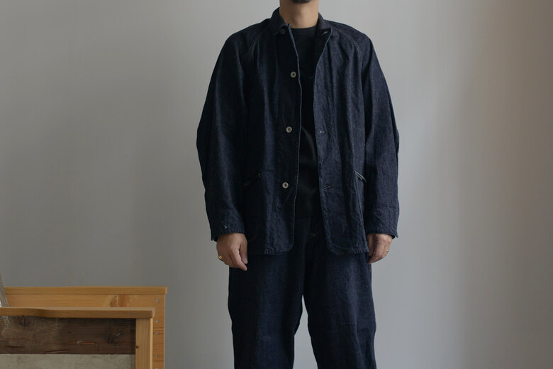 昔から変わることの無いデザイン。それ以上それ以下も無い完成された物の1つだからなのかもしれない。そしてデニムというのも気分が上がる。着飾っても良いだろうし、ちょっとそこまで出かける時に羽織る事も良い。汚れたとしても自宅で洗えて気兼ねなく着れる。だからこそ沢山着込めて1人1人違う経年変化を楽しむ事ができるのだと思う。先を想像出来て、どんなシチュエーションにも馴染んでくれる。それがコモリのワークジャケット。きっと日常に寄り添ってくれるでしょう。
