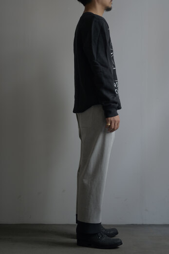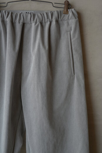 ちゃんとしてるけど気を使わなくて良い。家にいる時にも近所に出かける時も飲みに行く時だって穿いていける。汚れてしまっても洗濯機で普通に洗える。伸縮性があるので動き易くスウェットの様に膝が出ることも無い。ライトグレーは合わせ易く、季節を問わず使えそうだ。ウルトラスエード、この素材の虜になって何年経つだろうか。コート、ジャケット、ベスト、パンツ、ショーツ、Tシャツ。たくさん所有していて、どれもまだまだ現役で衰える感じがしない。何年前の物でも着ると気分が良い。それはCLASSだから、という部分が大きいのかもしれない。何故なら堀切さんのデザインはいつも驚きやワクワクを与えてくれるからだ。CLASSを着る。そしてクルーキットやLILY1ST、PROJECTbyH.を着る。自分にしか出来ない組み合わせが本当に楽しい。だから無いと困るのがCLASSなのだ。