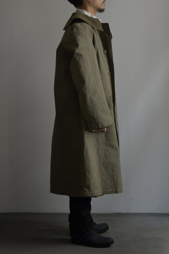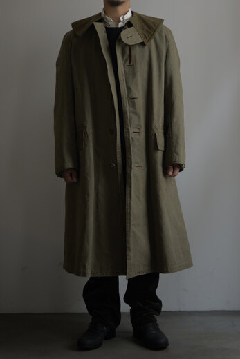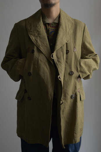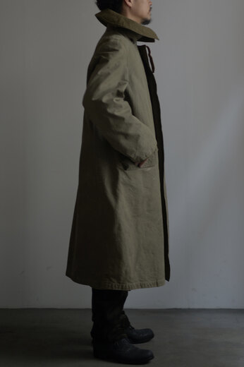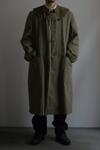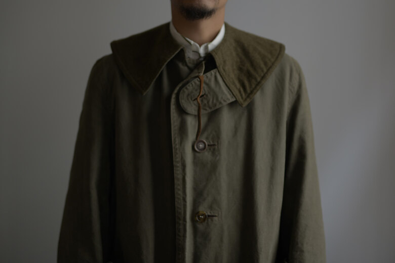ミリタリーやワークウェア、これだけの時が経っていても未だ見ぬ洋服がたくさんある。そんな洋服に出会える事はとても貴重な体験でもあり、誰とも被らない洋服を纏えるという楽しみもあります。1930-40年代イギリスのロイヤルアーミー、長距離砂漠挺身隊(Long Range Desert Group:LRDG)のためのキャンバスコート。LRDGは第二次世界大戦期においてイギリス陸軍の偵察・襲撃部隊で当時超少数の兵士による部隊であったことから現存する個体が非常に少なく、このコートは歴史的にも大変貴重な1着。重量感、UKならではの丁寧な作り、程よく柔らかくなっている生地やレザーのストラップなどヴィンテージでしか味わえないコート。