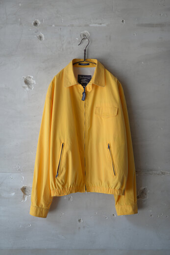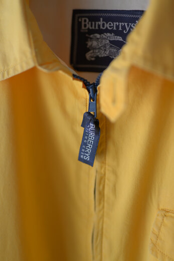 80から90年代、富裕層の人がレジャーとしてセーリングをリゾートで楽しむ為に製作されたと推測されるスペイン製のバーバリー。ニッチなモデルだったらしく、今となってはとても貴重な一枚だ。高密度な生地は経年変化により滑らかになりサラッとした肌触り。都会的なイエローにネイビージップの配色が綺麗で、スポーツの要素を加えながらも洗練されていて、ファッションとしても完成度が高いと言える。この力の抜け具合でバーバリー、というのも面白い。