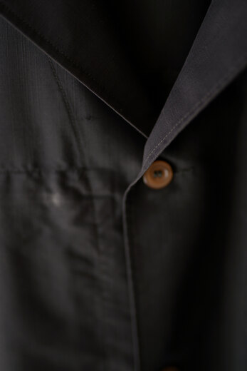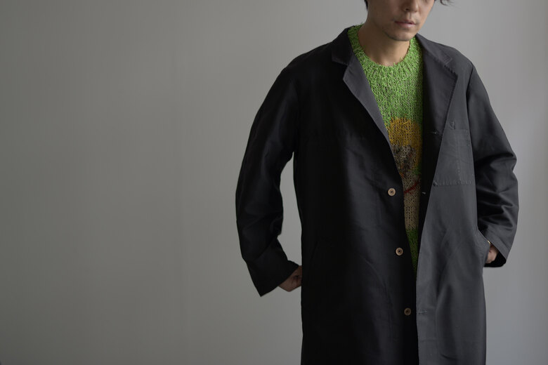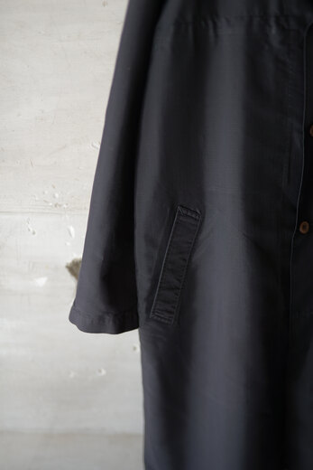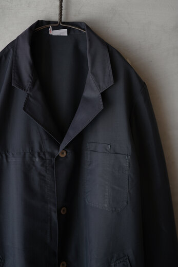 1960年代、フランスの馬商のコート。もっと古い時代にはインディゴリネンのコートやスモッグが彼らにとっての労働着で、これは化繊の発達期に生まれたとても貴重な一枚。クラシックとハイテクの混ざり合うバランスが面白い。スプリットラグランで動き易く、ポケットが沢山ありミリタリーウェアにも通ずる実用性も持ち合わせている。化繊の薄くて軽いコートは春や秋に着るのが楽しい。