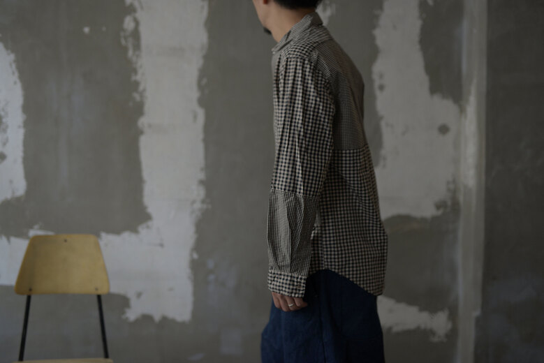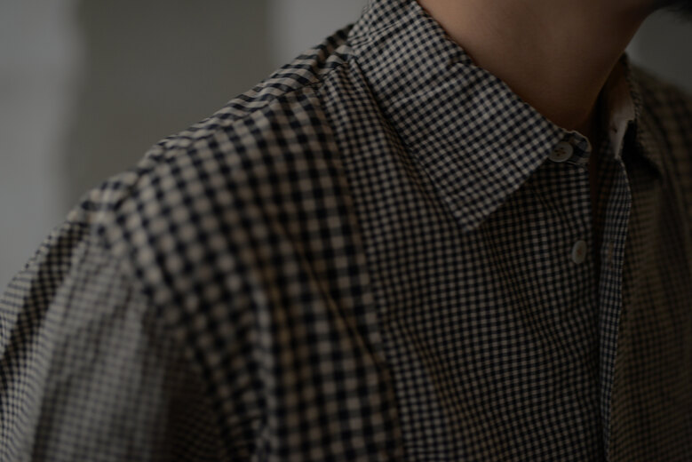 素肌に着たい、と思える程滑らかで気持ちの良いシャツ。触れるだけでも上質さが伝わってくる細番手で高密度なイタリアンコットン。大きさが異なるギンガムチェックを用いて、一枚のシャツ毎に柄域が違うパッチワークを丁寧に手作業で行い、染色にはお茶が使われている。ほんのりとブラウンが全体的に優しく彩られ、日光で見ると何とも上品なゴールドに見える。ボタンホールはシルク糸で手縫い、ボタンは古い貝ボタンが使われており、時間を掛けてゆっくりと、丁寧に作られている事が伝わってくる。『今までで1番納得のいく仕事ができた』とオリバー氏が言われていたシャツ。届くまでどんな雰囲気なのか全くといって良い程わからなかったけど、荷物を開けて取り出した時の高揚した気分はとてつもないものだった。お店に並べられる事がすごく嬉しいシャツ。是非皆さんにも見て、着て楽しんでもらいたいオリバーチャーチの傑作です。<br>