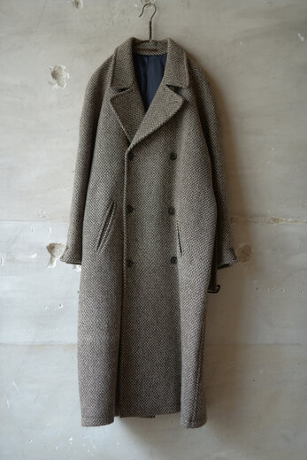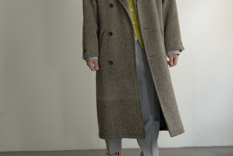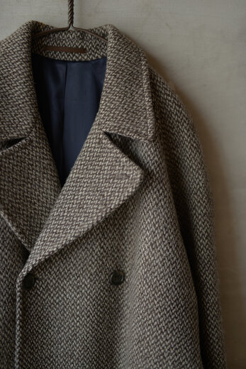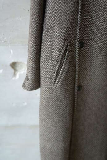 冬の楽しみの一つはコートが着れるという事。ウールやカシミアなど冬の素材を見るとこの季節にしか着れないという所から特別な気分になれる。このコートを見た時はまだ暑かったけどテンションが凄く上がっていた。80年代にジョルジュ・レッシュが手掛けたツイードコート。とても分厚い生地だが着ると軽くて柔らかく、動き易さに驚かされた。生地も良く仕立ても良い。とても手間を掛けて作られたコートなのだと伝わってくる。そんな手間暇掛けて作られたコートが40年も未使用でここにある。それはそれで面白い縁だと思った。