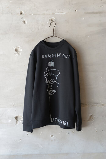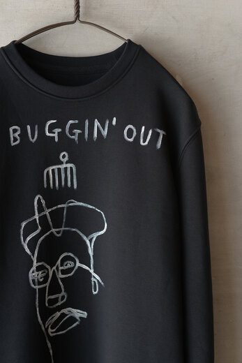 LE TINGSとAndrew Ibiのコラボレーションスウェット。スパイクリー監督の映画のオマージュ。1つ1つ手書きで、アートピースな1着です。昔話で申し訳ないのだが、CDのジャケ買いとかそういう言葉がありました。なんとなく”イカすな!”で買って、気に入ればそっから深掘りした。それで、学校では習うことのない文化だったり歴史だったり背景だったりを学ぶ事もあった。そんな感じでこのスウェットを手に取ってから知る事があって何か感じたり、そこから夢だったり憧れだったり希望だったりが生まれれば最高だなと思う。それと、このスウェットすごく温かくて心地良い。プリントTだったりイラストのスウェットだったりは探すと無い事が多く、よい生地とアーティスティックな雰囲気がとても上品だ。