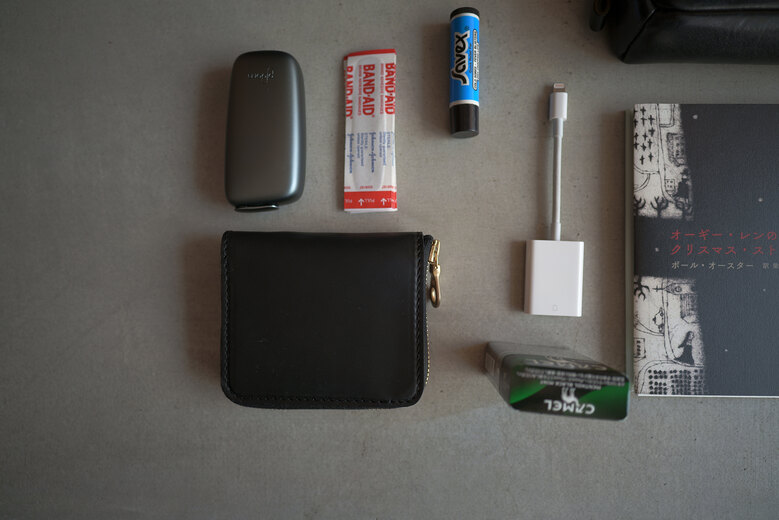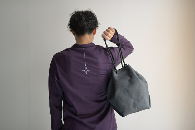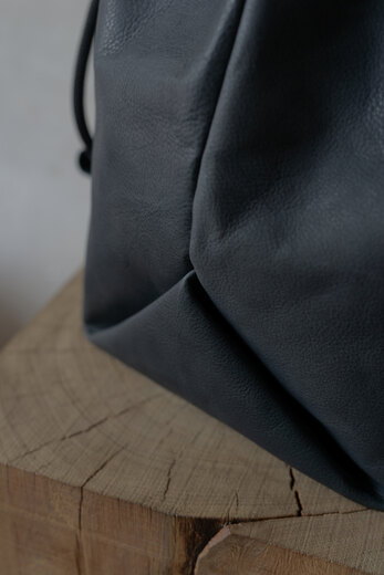 新しくTochcaのラインナップに加わったKobe beef。油分をほとんと入れず、アトリエでさらに洗いをかけ伸ばす工程を経て和紙のような素朴な雰囲気に。適度に油分を足しながら使ったり、何もせず使ったり。使う人それぞれ違った経年変化を楽しめる、革じゃないような革。巾着は贅沢に大きな面を使って作られていて普段使いにもちょうど良い大きさ。中には取り外し可能なキーリングがあり、鍵を探す手間が省ける。そして見た目からは想像できない軽さにはびっくりした。300g程度と革の鞄としては本当に軽い。良い意味で裏切られる質感、使い勝手の良さ、素朴な雰囲気。何だか気に入ってしまった。